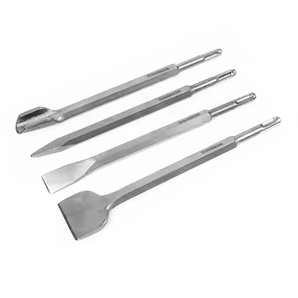 Set de cinceles x 4 piezas (punta, plano, ancho, acanalado) Rankor – RCS910401